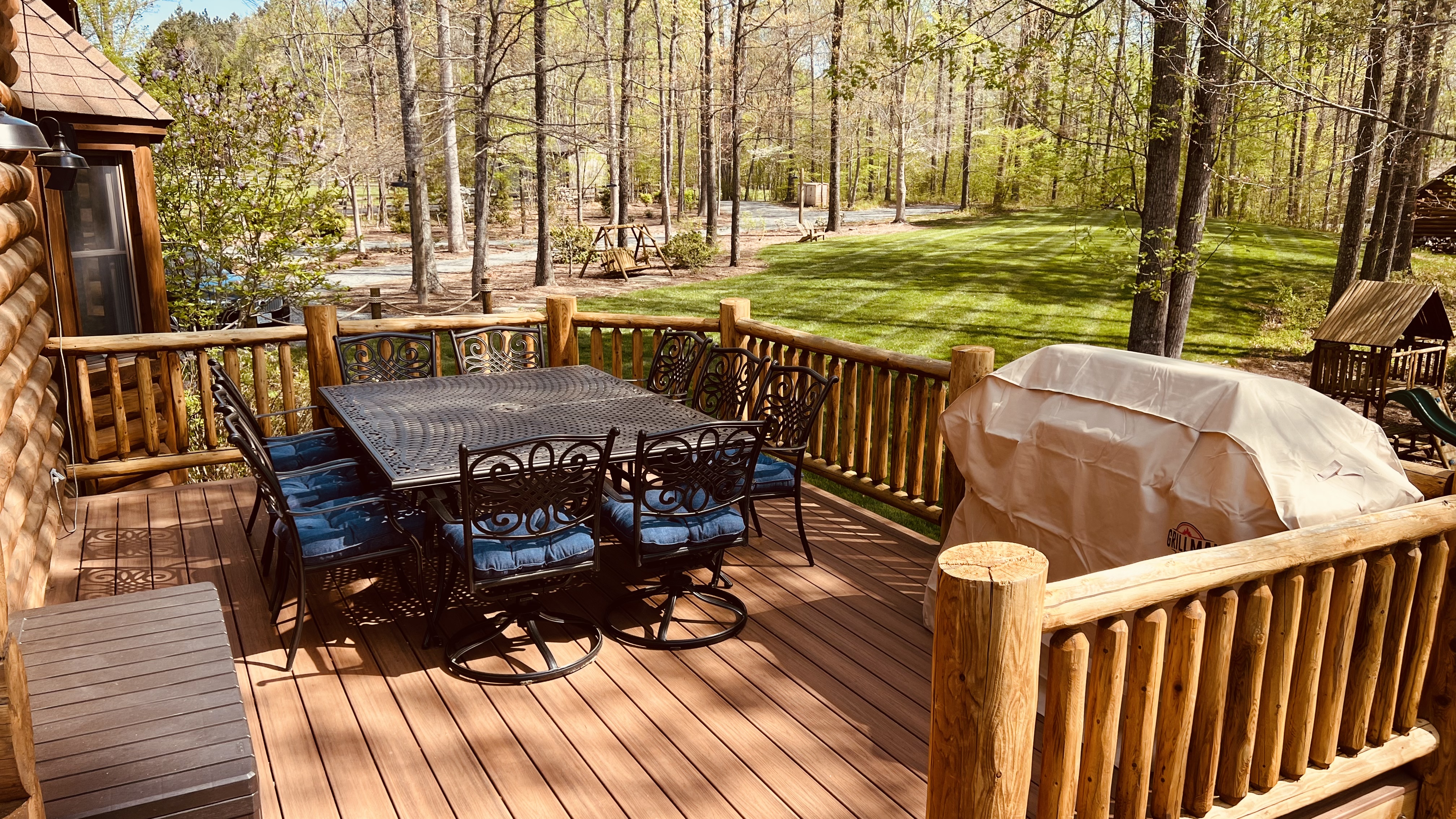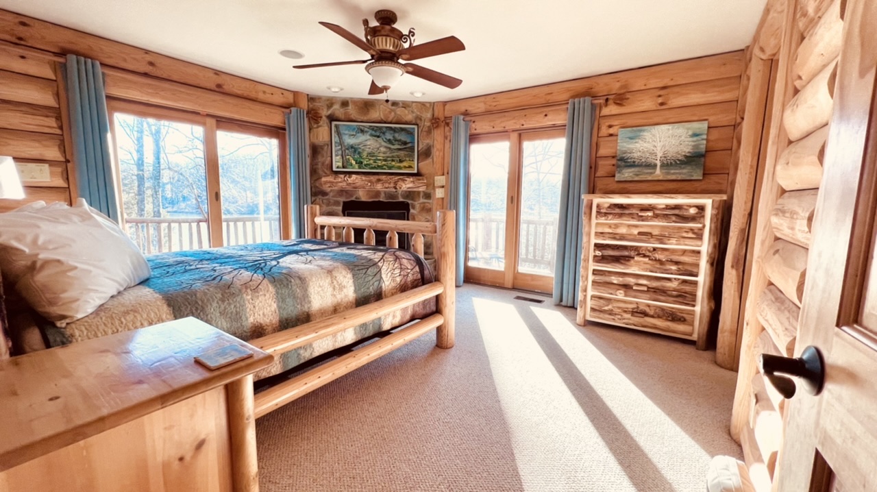 - Multiple decks and seating areas wrap the cabin, including a cozy back‑patio fireplace for crisp mornings or cool evenings.