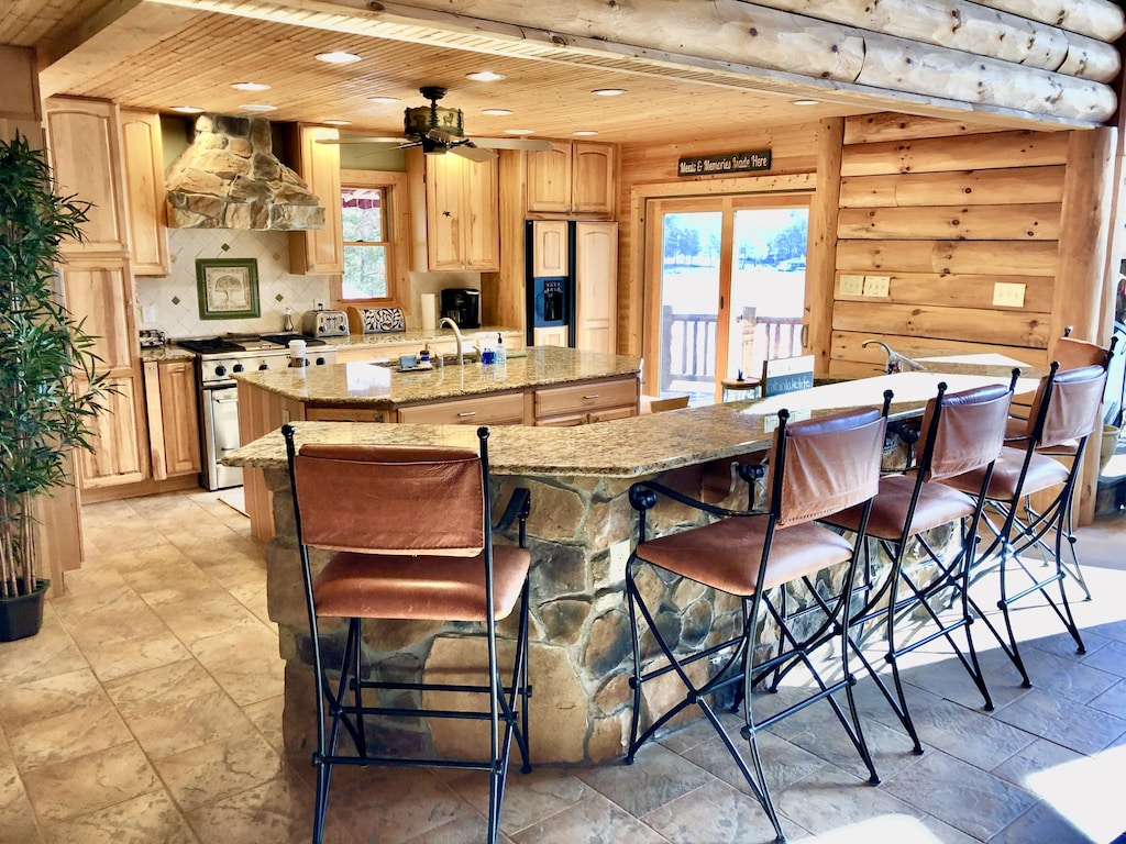 - The handcrafted log home features an open floor plan with modern amenities, offering plenty of space to gather or slip away for personal quiet time.